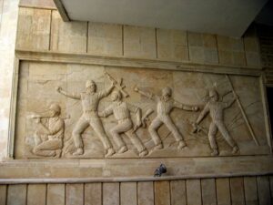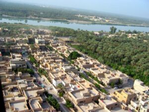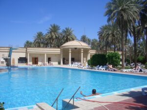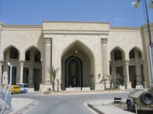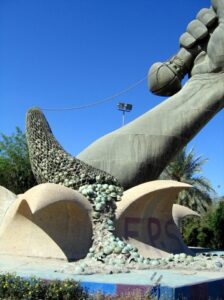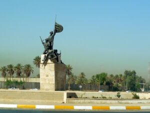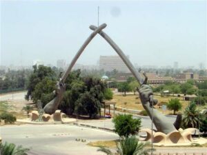14th July Circle statue (built in honor of the 14 July 1958 military coup led by Iraqi General Abdul Karim Qassim to overthrow the existing monarchy, eventually leading to the Republic of Iraq); International Zone in Baghdad