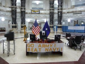 Got to love the rivalry...Army fans moved an Admiral's entire office down to the first floor of Al Faw Palace during the days leading up to the Army/Navy game; Camp Victory