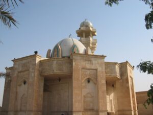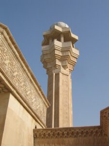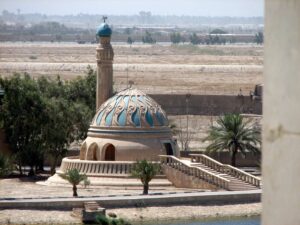 A picturesque mosque, as seen from the balcony of Victory over America/Iran Palace