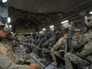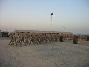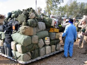 Inbound soldiers getting ready to fly to Iraq; Ali Al Salem Air Base, Kuwait