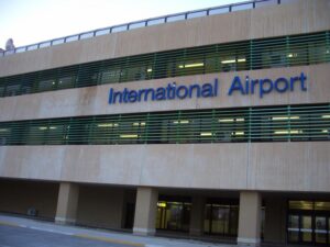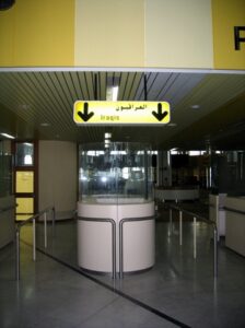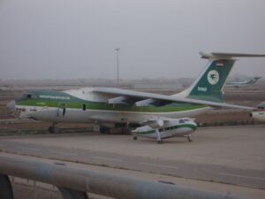 If you squint hard, you can just make out the "Saddam" lettering before "International Airport"; Baghdad