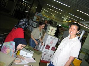 The SPAWAR gang getting Iraqi "moon dust" all over their shoes & clothes; Balad