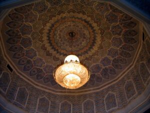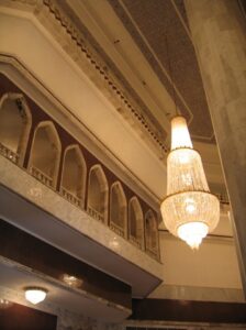 Chandelier hanging just inside the main entrance to Al Faw Palace; Camp Victory
