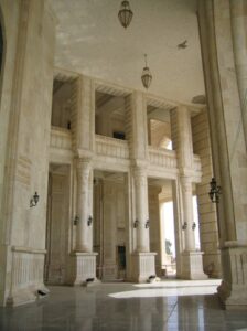 Interior view of Al Faw Palace. There are over 60 rooms and nearly 30 bathrooms (Becky worked here for nearly 4 years); Camp Victory