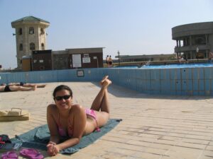 Posing on the rooftop of the Victory Over America/Iran Palace (Saddam's brothel aka "Perfume Palace" is in the background)