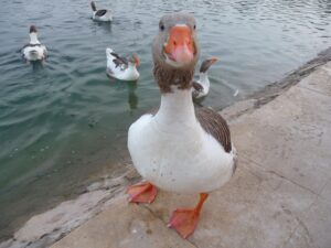 Where's the food? A hungry goose anticipates an easy meal; Camp Victory