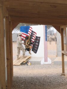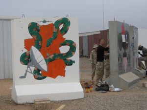 Soldiers tasked to beautify the T-wall barrier near the Balad DFAC