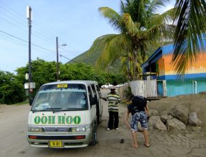 The car rental agencies in St Kitts were packed with other day-cruisers looking for transportation. We ran around to Hertz, Avis, and Caines Rent a Car before finding a minivan capable of transporting all of us. Renting on St Kitts is not a budget experience! We were quoted the rock bottom rate of $105 for a 7 pax minivan (excluding CDW), and negotiated to return the vehicle at 9 pm. Unbelievably, the standard practice is to return the vehicle at 5 or 6 pm, even though most folks only have the vehicle for half a day (and are still charged for a full day’s rate).