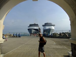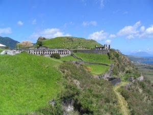 St Kitts and Nevis is a federal two-island nation in the West Indies. It is the smallest sovereign nation in the Americas, in both area and population. St Kitts has the only UNESCO World Heritage site (Brimstone Fortress) in the Leeward Islands. We have visited this island twice. The first time we rented our own vehicle and visited Brimstone Fortress (an imposing sight atop Brimstone Hill, nicknamed the “Gibraltar of the West Indies”), and Turtle Beach (on the SE peninsula). Our second visit was more relaxing, with the day spent getting a bit tipsy beneath a beach umbrella at the lovely South Frigate Bay.