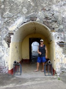 As advertised, pulling into St George harbor was one of our most picturesque stops. We had gotten up early to run in the gym, and were pulling in ahead of schedule (before 0700) so we rushed through our workout and ran upstairs for some photos from the deck. We were able to disembark at 0800, but were running a bit late, so we finally hit the ground 20 minutes later. Gotta love St George! Free internet was to be had, which was especially great since we had to check to see where to meet the Seafari Adventures tour. After briefly checking our email, we decided to walk up to Fort George, which provided a panoramic view over the entire city. Touts offering their services (tours, spices, company) were everywhere, but a polite “no thank you” was all it took to dissuade them. Becky later found out that she could halt them mid sentence with this simple phrase “we already have a tour booked’…that was the magic phrase to send them chasing other customers for their business. Awesome!
