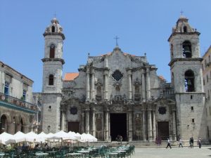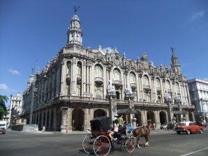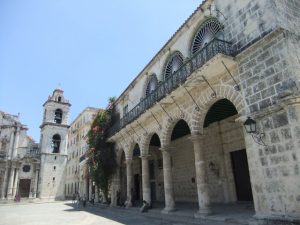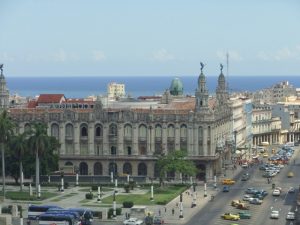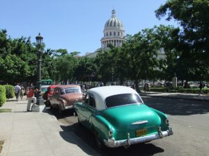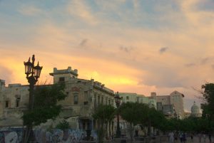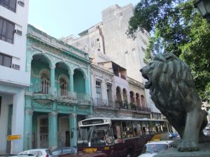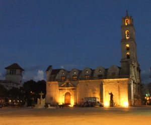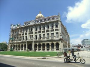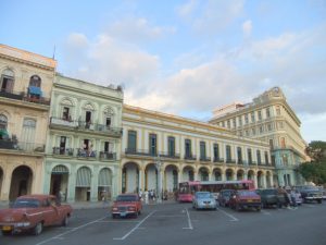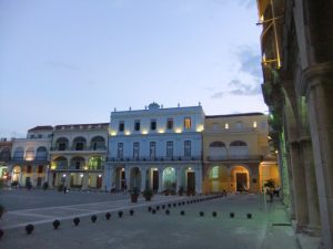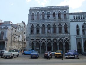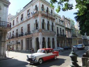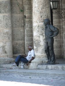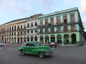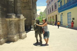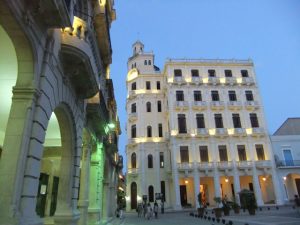 Getting into old Havana was easy….we caught a taxi for 25 CUCs and had a smooth ride into the city. The driver was unable to make change for 50 CUCs, so we agreed to check in to the hotel and get smaller change to give him. The Hotel Valencia is conveniently located in the old city, and even though we couldn’t find our check in voucher (we had a confirmation number but for some reason the receptionist was insistent on the voucher), we eventually were given the Sueca room, located just above the reception. The hotel is beautiful, with a gorgeous courtyard full of pretty plants, and the rooms tastefully (although simply) decorated. We were instantly invited by our bagboy, Alfredo, to join him and his family at the beach tomorrow, and agreed with no firm arrangements on when and how to link up. After getting settled in the room, we set out to explore the city, wandering first to the Plaza de San Francisco where we saw a cadeca which was closed already (we forgot the time here is an hour ahead of Mexico, so it was already well past the closing time posted of 1630). The Euro to CUC rate was listed as 1.09 and we decided to check the other cadecas and banks to see if any others had a better rate. The Plaza de San Francisco is a cobblestoned area, that used to be the waterfront of the early colonial city. Its main focal point is the white marbled Fuente de los Leones (Fountain of Lions) erected in 1836, designed by Italian sculptor Giuseppe Gaginni. The lonja del comercio (Good’s exchange) building has an interesting façade, and we could see that its dome is topped by a bronze statue of the god Mercury. The most interesting building on this square is the Iglesia y Convento de San Francisco de Asis where we saw a bunch of locals giggling as they posed next to a life sized bronze statue located just outside the main entrance to the church. The figurine is of a tramp known as “El Caballero de Paris”, and the locals pulled at his beard and held his fingers for good luck. Our next stop was at the Plaza Vieja, which is the old commercial square surrounded by calle Mercaderes, San Ignacio, Brasil and Muralla. The entire square has been tastefully restored, and photos depicting the “before and after” images of the various mansions, museums, and restaurants are in front of each building. The square had been used in colonial times for bullfights, executions, and fiestas, but today is a peaceful square dominated by a rather plain marble fountain in the center. We expected to be hassled constantly while walking the streets, but found them to be surprisingly devoid of the notorious jiniteros and jiniteras that we had been forewarned about. Palacio Cueto (also known as Palacio Vienna) is probably the square’s finest building, a daring art nouveau building that dates from 1906. Today it is a crumbling ruin that still retains its former glory, but it appeared to be undergoing renovation as a possible future hotel? It will look fabulous once completed. We spent the rest of the evening wandering the back alleys of Havana, smiling at the curious and friendly locals who greeted us in surprise as they saw us sauntering up and down their neighborhoods. Some sections felt more dodgy than others (especially for Robby with his SLR dangling from his neck) but we kept our wits about us and smartly moved from one section to the other, admiring the gorgeous (and crumbling) architecture of Havana’s back alleyways. The vintage cars on almost every street corner were a delight, and we were shocked to see so many of them in operational existence, not merely showcased as an antique but rather as a functioning mode of transportation. It was very cool. As the sun was setting, we happened upon the massive Capitol and the intricate Grand Theatre, and promised to return here in daylight hours to explore them in full. With no map in hand, Havana’s streets were easy to navigate, and we found ourselves back on the main street of Calle Opisbo where all the action seemed to be happening. Crowded with tourists and locals alike, we enjoyed our evening stroll through the dimly lit streets of Havana and eventually made our way back to the beautifully lit Plaza Vieja. Security guards had blocked off certain sections of old Havana, so we had to dodge and weave our way through the city to make our way back to Hotel Valencia where we called it a night. Overall first impression of Havana is that we are going to love this city!