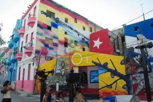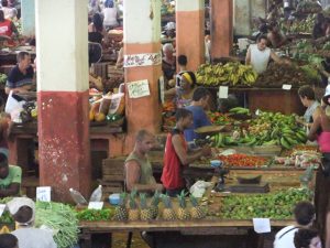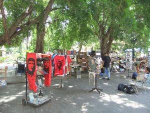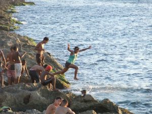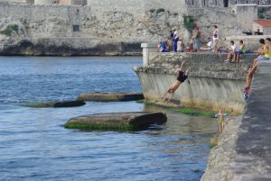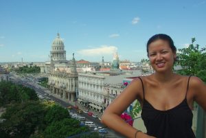 19 Jun: Today was our marathon sightseeing day, but what a day! We started out near the Capitol, visiting Friendship Park where a bust of Abraham Lincoln is on display. Next stop was at Barrio Chino (Chinatown) which has some eclectic architecture and friendly people, who were all trying to guess Becky’s ethnicity. The range of “china” to “brasil” were mentioned, and we laughed that almost every person in Cuba is lumped into some category or description. The Havana train station was our next quick stop, followed by visiting remnants of the old Havana city wall. We then headed towards “Cuatros Caminos Mercado”, a very colorful farmer’s market where we were able to buy inexpensive star fruit (5 pesos each) and guavas (about 8 for 20 pesos). Of course we had a field day taking photos here, with all the hustle and bustle of the market lending its full charm. There is an animal section to the market, and a friendly vendor placed a baby chick in Becky’s hands as a present when he saw her checking out the chicks! She had to reluctantly hand it back, and then we made our way over to the Plaza de la Revolucion, which provides a buzzard’s eye 360 degree view of Havana (seriously, there are soaring vultures everywhere at the top of the Jose Marti Tower!). The views were impressive and we could make out the Christopher Columbus cemetery so we decided to head over there next. We were not impressed when we finally reached the main gate to find that the price of admission had jumped from 1 CUC to a whopping 5 CUCs, so we opted to skip it. We saw a confused tourist making his way towards us, and he asked if we spoke English. Delighted when we responded in the affirmative, he told us he had been spending his time at a Vedado resort and had decided on a whim to visit Havana. He wasn’t willing to pay the resort prices for a city tour, and had opted to make his own way to the city on a local bus which had taken almost 3 hours (compared to his 1 hour expectation). As a result, he only had a very short amount of time to see Havana and wanted us to point out the malecon to him. We felt bad for him when he explained he hailed from Canada and knew virtually zero Spanish, which made it impossible for him to communicate with many of the Cubans that he had come across. After bidding our new acquaintance good luck, we stopped for an ice cold soda at a nearby bakery before making our own way towards the malecon. Passing by the US special interests building (a plain nondescript building behind a metal fence), and the anti-imperialist plaza which stands immediately next to the US special interest building, we had to laugh at the stark contrast between the two areas. Further along the malecon, we were suddenly accosted by boys demanding that we take their photos and give them CUCs as payment. Not from us…we both ignored their increasingly strident demands and wandered onwards towards the Hotel National de Cuba. This is a gorgeous hotel along the malecon, and as we explored its grounds, discovered photographs of some celebrities who have stayed here (Kate Moss, Naomi Campbell, Micheal Keaton). Afterwards, we saw the mural at Hotel Tryp, followed by some super inexpensive ice-cream at Coppelia. We were amazed that the locals around us were consuming double or triple servings of ice-cream, devouring it as if they would never taste it again! It was rather funny watching everyone consume a ton of ice-cream, when we were rather satisfied with our single bowl each of three scoops. We took to walking the streets of Havana some more, passing by the impressive looking University. Our plan was to stop by the Convento del Carmen, but it had a religious ceremony going on so we didn’t venture inside. From the convent, it was a short walk to the fascinating site of “Salvador’s Alley” which is a Santeria religious area (lots of children begging for candy/money as well as adults)…we didn’t give in but could see that a lot of other tourists had and didn’t like the aura of “gimme, gimme” which hadn’t been felt elsewhere in Havana. Sunset at the malecon was nice, with lots of folks swimming and enjoying the final moments of sun before it disappeared over the horizon. We strolled along the prado back towards our hotel, where we freshened up briefly and headed back out to the Chinese restaurant of La Torre del Marfil (super tasty dishes). Had a late night and a crazy busy day but slept well, especially with our AC on full blast.