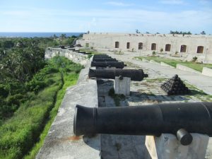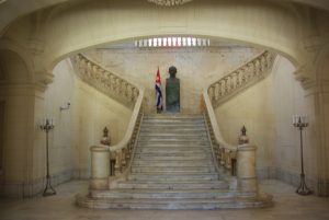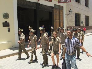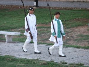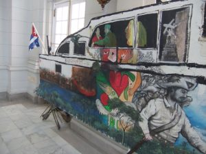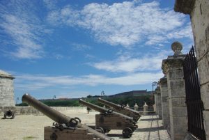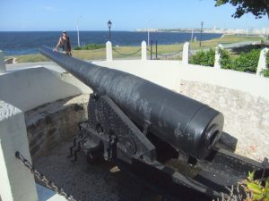 18 Jun, Friday: After breakfast, we headed towards the Capitol and found to our dismay that no visitors are allowed as renovations are ongoing! What a pity as we were both quite curious to check out this monstrosity of a building. We settled instead for a 2 CUC tour of the Grand Theatre, and thought it was interesting and worthwhile. We got to sit in Fidel Castro’s very own box seats (they look exactly like everyone else’s but are smack dab in the middle of the theater for a decent view of the stage). Next, we wandered into Hotel Inglaterra which has a fine bar area, and then we went down to the Museum of the Revolution which was interesting although heavily slanted with only one perspective and laced with lots of propaganda. We were both surprised to see the Granma, a vessel that Castro used during the revolution, behind heavy glass with no less than 4 security personnel cautiously eyeballing every single visitor as if we would somehow smash through the glass and make off with the boat…it was very funny and a bit bizarre! After the museum, we skirted outside to see part of the old city wall to the rear of the complex, and we headed towards the statue of General Maximo Gomez. While retracing our steps on the Prado, we found some 10 peso (national moneda) pizza and 2 peso mango juice (yummy) opposite the Bacardi building. Our goal this afternoon was to figure out how to get our Viazul bus tickets, so we stopped by to talk to InfoTur but they were trying to sell us one of their tours for 15 CUC each (the Viazul bus ride is only 12 CUC each). We declined when we found out that we could just buy them the day of departure, one hour prior to the bus departing. We then took a 10 peso ferry over towards the Parque Historico Militar Morro-Cabana and had to hike uphill towards a Christ statue and onward to the main entrance to the Morro. We paid 6 CUC for entry prior to 1800 (those coming for the nightly canon ceremony pay 8 CUC). The complex is large but we had more than enough time to explore it before the 9 pm ceremony which was packed with locals and visitors alike. Becky met 2 Chinese girls studying Spanish here in Havana, and enjoyed a conversation in Chinese, Spanish and English…very funny. We watched the sunset and waited for the canonazo, a ceremony that brings nightly crowds cramming upon each other to watch as the soldiers dressed in replica outfits march smartly to fire the canon at dusk. The cannon only fires once but it is damn loud (make sure to cover your ears!) For some crazy reason, we didn’t bring much money with us to the Morro, so we didn’t have enough for dinner and a taxi ride. Instead, we settled for some granola bars and oreo cookies in lieu of dinner, and after the ceremony, caught a taxi for 5 CUC back to our hotel.