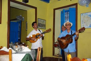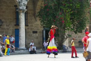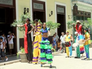 20 Jun: After our marathon day of sights yesterday, we decided to sleep in and get caught up on some rest. It was a shock to realize that it was already 0930 and as our room remains pitch black dark and it is impossible to know what time of day it is without a clock. We jolted awake and were able to catch the remaining breakfast buffet before they wrapped up at 10 am. Our main agenda today was to get some nice shots of the city from the rooftops of Hotel Parque Central and the nearby Hotel Saratoga. We headed directly for the rooftops where the views were absolutely gorgeous. After having walked almost every single street in the city, it was amazing to appreciate Havana’s perspective from high above. Stunning views and we thought both hotels (while more fancy than what we are normally used to) would have made a great base to explore the city. From the skyline, we were finally able to observe the Bacardi building clearly, noting that there is indeed a bat atop the whimsically designed building. We than backtracked towards the Plaza de la Cathedral to visit the ever crowded and boisterous Hemingway haunt of “La Bodeguita del Medio”, which by 12:30 was already in full swing, with a lively trio of performers and drunk tourists snapping photos of each other with glee. Too crowded for our tastes, we just enjoyed the ambiance and décor, before heading back out in the sultry heat to pose with one of Havana’s legends, a cigar chomping bespeckled lady happily posing for portraits. A street party complete with colorfully clad stilt walkers was in progress, so we trailed them to see where the party was heading. Of course, their helpers were policing up the photographers asking for tip money, but it was well worth it for some colorful street shots of the entertainers. We headed over to the free Coche Mambi (a 1900 train car built in the US, and brought to Cuba in 1912 as the Presidential car, a palace on wheels with a formal dining room), but it was closed due to ongoing renovations. Since that was a complete bust, we headed over to Plaza Vieja’s Taverna de la Muralla, which is Havana’s only home brewed pub, set up by an Austrian company. We enjoyed live music entertainment and some nice cold beers in a great atmosphere…we love Habana! Afterwards, we chilled at the hotel and relaxed for the remainder of the afternoon before heading out for dinner at Al Medina, an Arabic restaurant complete with hummus, falafel and kebabs. The food was OK (last night’s Chinese restaurant was definitely much better) and our bill was under 20 CUC, including propina (tip). We headed out to the Plaza de la Cathedral for a nightly show put on by the restaurant El Patio. Tonight’s theme was a fashion catwalk show but we were more entertained by an elderly couple who was spontaneously breaking out into dance at the lively techno and pop music. Very funny to see an older lady breakdance along with her husband who was dressed in suit, bowtie and top hat perform a modified moonwalk. Headed back to the hotel to pack for our onward trip to Vinales.