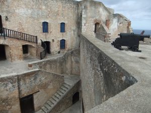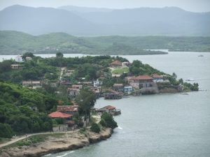 6 Jul, Santiago de Cuba, El Morro: After breakfast, (Sandra was sick so Paco cooked a wonderful meal for us….we told him we wouldn’t have time for dinner tonight as we were on the go, go, go), we headed over to Santiago’s most famous museum, the Cuartel Moncada (entry 2 CUC plus 1 CUC for camera). This famous building was stormed on 26 July, 1953 by Fidel Castro and his men. The assault failed disastrously, but became the first act of the Cuban Revolution. The exterior of the building still has bullet hole marks (although they are not the original…Batista ordered the originals filled in and Castro had them recreated). We were able to see a scale model of the barracks and surrounding buildings circa 1953, lots of weaponry, and were horrified to see the graphic torture images of what Batista’s men did to the captured revolutionaries. It was interesting, but we disagreed with our guide book’s write up that this is “the best museum in Cuba”. We had some time to kill before our noon meeting time with our ride, so we stopped by the colorful Museum of Carnival (our participant passes saved us on entry fees), and checked out the costumes, instruments, posters, and photos of yesteryear’s Carnivals. Carnival is HUGE in Santiago and we wistfully wished we could be here at the end of July to partake. We met our taxi driver at noon and headed towards Cayo Granma, a small island that sits about 1 KM offshore from El Morro. It is a small fishermen’s colony, which looks quite scenic and quaint in the middle of the bay. We caught a ferry where the locals paid only 20 centavos but we were forced to pay 1 CUC each (rip off), for the short journey to the island. We quickly found out that the island is miniscule, and we walked around it in a leisurely 20 minutes, hiking to the highest point of the island to visit the Iglesia de San Rafael which was closed. While waiting for a return ferry back towards El Morro, we were lucky enough to catch alternative transport back at the cost of only 1 peso each national moneda. From the ferry drop off, we walked towards El Morro, with a brief (and late) lunch stop at Playa La Estrella, where a beggar immediately accosted us for money because he was “hungry”, but we offered him food instead. He didn’t like any of the food we offered, but did take our Oreo cookies, before starting again on us giving him money for a drink. We flatly refused to give him money as we didn’t want to encourage begging, and he finally thanked us for the snacks and left us alone. The walk up towards San Pedro de la Roca Fortress (El Morro Castle) was a bit steep and we were both drenched in sweat from our brief exertions. The El Castillo del Morro was built in 1633 and is set high on a 60 meter promontory, with fine 360 degree views. It is a UNESCO World Heritage site, and we quickly found out that the breeze up there was magnificent, drying off our sweat in mere minutes. There were several performers already at the castle in costume, gearing up for their 1800 ceremony. The El Morro castle is quite scenic, with lots of canons and beautiful views overlooking the harbor. An entrepreneur was selling coke, beer and water for 1 CUC each, so we bought a few drinks and watched the festivities, meeting an interesting America/Cuban musician who worked for several years touring with Barry Manilow around the world. He was really into the music and explained a bit of the history for us…very fascinating individual! The performance was colorful, engaging but a bit short. We enjoyed all of it, and followed the dancers as they exited from El Morro over to an impromptu parking lot, where a Brazilian band was putting on a show. The evening cononazo ceremony kicked off at around 1830, so we headed back into the fort to witness the colonial garbed soldiers load and torch a canon at sunset, only to have it fizzle short. What a pity…the Cubans watching the event made fun of the soldiers (apparently the evening before the same thing happened), but the views at sunset were lovely. To our immense relief, our taxi driver was patiently awaiting us in the parking lot where he had promised to be waiting for us (we had prepaid earlier in the day and were reluctant to do so as we had no guarantee that he would show up but he wanted payment to guarantee he wouldn’t give his business to someone else or have us ditch him on the return ride with another cabbie!) We were so glad to see him, and headed back into town after quickly changing out of our outfits into some cleaner (and less sweaty) clothes. Our destination was the Teatro Heredia where the Brazilian contingent from Pernambuco were performing, and what a great performance! They wowed the crowd with the variety and complexity of their performances, and amazing costumes. Excellent, but it was annoying having to contend with folks standing up at the base of the stage trying to video tape the entire performance with their amateur cameras. Leave that to the pros, people! We walked back and were in our casa just before midnight, where we talked briefly to Paco and Sandra before taking nice cold showers to cool down and get some of the sweat of us. Great day.