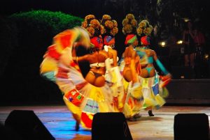 4 Jul, Santiago de Cuba: This morning we decided to follow our Chris Baker’s Cuba Moon travel guide’s “Revolutionary walk” tour, first visiting “Museo de la Lucha Clandestina”, which details the underground struggle against Batista with displays entirely in Spanish, and no photography allowed. Opposite the museum is a tiny house that Fidel Castro lived in for a brief amount of time while in Santiago, and we kept zig zagging back and forth through the city until we eventually made our way to the Cementerio De Santa Ifigenia (1 CUC) and the Mausoleum of Jose Marti. The cemetery had numerous 26 July grave markers, with bright red and black flags marking the revolutionaries grave sites. The most important thing at the cemetery was the small military ceremony carried out by proud young soldiers at the Marti Mausoleum every 30 minutes. They were led by a female soldier who smartly marched them over to the mausoleum in a “changing of the guard”. We were feeling pretty energetic so we opted to hike onward to the Revolutionary Plaza where we bought our Viazul tickets for next Thursday towards Baracoa for 15 CUC each. Parched for water, we went to the restaurant next door to Viazul where the waitress immediately pointed to our shirts and said that no tank tops were allowed inside. We settled for her bringing bottles of water to us, but it was a comedy of errors, with her first bringing tiny bottles of water instead of the 1.5L we asked for, followed by her bringing out a 1.5L bottle of TuKola instead of water, and then with her telling us there were no 1.5L bottles of water. At this point, we asked for our money back when miraculously, the large bottles of water appeared as if a mirage, while our waitress slyly pocketed an extra CUC for her efforts. We later found out we could have had a much more pleasant and simpler experience if we had just made a stop at any one of the gas stations where there were plenty of 1.5 L bottles of cold water to be had. Since we were already at the Plaza de la Revolucion, we walked up to inspect the massive statue of General Maceo on horseback surrounded by 23 stylized machetes, which is located next to the Viazul bus station along Avenida de Los Libertadores. It is a huge structure but it was hard for us to get a decent photo that put its size into perspective. We noticed the large Heredia Theater across the street, and Becky remembered reading that last night’s Fiesta del Fuego festivities had been held there, so we decided to stop by to get more information about the festival. A very entrepreneurial lady stated that today was the cut off to purchase VIP passes, granting us access to all the activities along with a corresponding schedule of events. We tried getting the information for free and even mentioned that the street parade was free, so why should we pay for passes when she explained that there were several cultural workshops and events held at the Heredia Theater, and without the passes we wouldn’t be able to gain entrance. She then quickly told us the passes cost 50 CUC each (originally 75 CUC) and we laughed along with her, telling her there was absolutely no way we could afford to pay that kind of money. Once she smiled in response and told us that she was sure we could work something out, we knew that we’d be able to work out a deal. In the end, we settled and agreed on 10 CUC for entrance to all events, and since it was all under the table with the proceeds going directly to the lady selling us the passes, it was win-win for everybody. The other ladies at the ticket booth looked like fellow co-conspirators as they furtively looked around for change when we gave them a 50 CUC note. Armed with a list of Fiesta de Caribe events, we decided that we’d head back to the casa for dinner (fried fish), and return back to the theater for tonight’s Curacao performance at 9 pm. Since it took us about 30 minutes to leisurely walk back, we opted to catch a 3 CUC taxi ride to the theater, and enjoyed the show put on by Curacao’s entertainers for well over an hour. Since we were in no rush after the show, we strolled back on Santiago’s deserted streets to the heart of the city, stopping by the packed Parque Cespedes to check out the entertainment put on at midnight. To our surprise, couples were out dancing and the area was crowded with revelers. We called it a night after deciding that a night of dancing wasn’t in our cards.