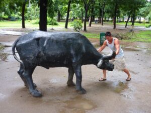 Luke stopping a water buffalo dead in its tracks; Rizal Park
