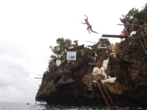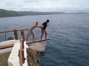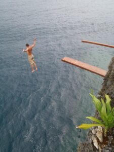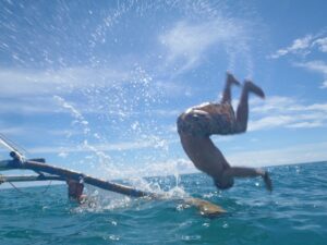 Luke somersaults off our bangka