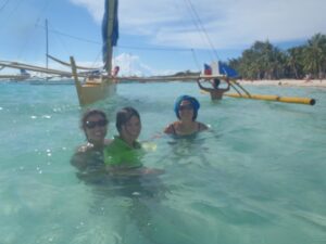 Ann, Becky and Cau Nam enjoying a marine walk at Bulabog Beach