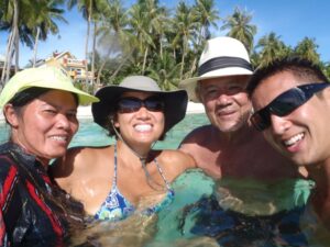 Chi Xuan, Becky, Cau Nam and Luke enjoying White Beach's gorgeous waters