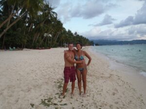 Enjoying happy hour at our favorite beach bar on Boracay