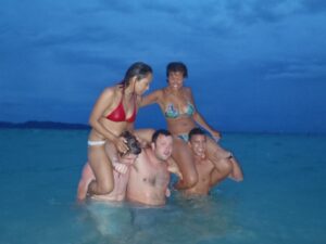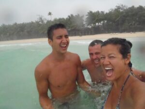 Luke, Becky and Robby goofing around in Boracay