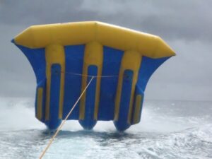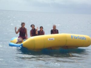 Becky, Ann, Chi Xuan and Cau Nam take a ride on the Flyfish; Bulabog Beach