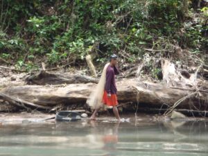 A fisherman carrying his net along the river; Pagsanjan Falls