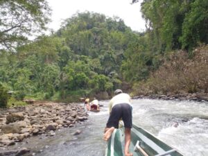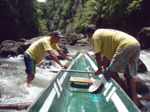 Our bankeros work as a team to get us upriver; Pagsanjan Falls