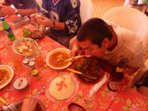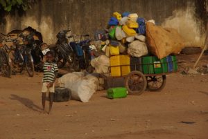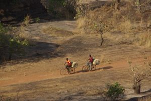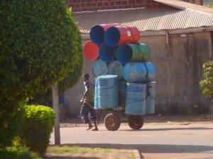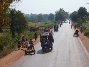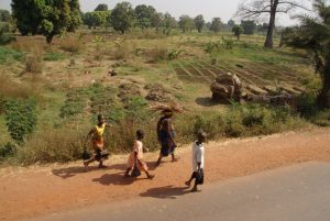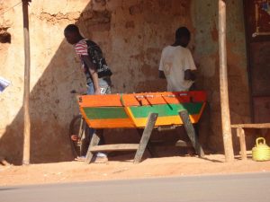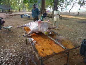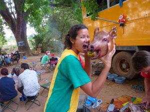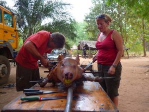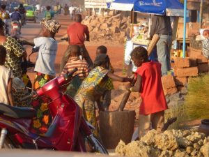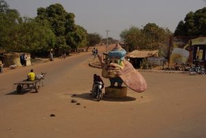23 Dec: Entry into Burkina Faso was relatively smooth, and the turkeys at the border crossing were especially tempting! The road was smooth and well maintained, and we were only 100 KM from Bobo-Dioulasso when we took a detour towards Banfora where we made our bushcamp. Mike, Luke and Hoff were trying to knock fruit down from a tree with stones, but kept getting their stones stuck in the leaves, so then they’d have to try to knock their stones out of the tree…it was a funny cycle, making for entertaining bush tv. Eventually Hoff got one of the fruits down and it looked like a coconut on the outside, but once cracked opened, tasted like a melon. Nancy’s cook group made sausages for dinner which went over well.