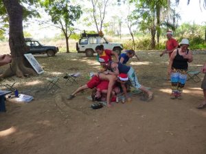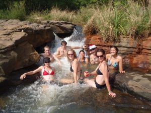 26 Dec: Boxing Day! We got to sleep in till 9 am, having a lazy morning with the filling up of the jerry cans our only task to accomplish in the morning. The boys had a hell of a time lugging the cans back down the hill, with assistance from Ruthie and Bree. Becky and Kendra signed up for the first truck guard duty, and a rotation sign up list was put up on the white board. We had about 2 hours to do laundry before lunch, and took the time to scrub our feet and wash our hair while we were at it. To our surprise, a large crowd of tourists appeared, and our idyllic spot was marred. We managed to get our laundry up to dry before lunch, and headed back up to the falls after lunch to laze the rest of our day away. Our goal was to find a secluded, peaceful spot but to our chagrin, a group of tourists decided to picnic right beside us…seriously people? There was over a mile long section of waterfalls and they had to sit right next to us? It was almost comical. The sun was strong, so we tried our best to stay out of it, and eventually headed up stream to find a jumping point into a pool. It was fun jumping into the waterfalls, and we ended up finding the continuous shooting button on our camera, capturing some priceless memories. Bree, Lucky and Dowelly had cook group, and they created curry for dinner (which Becky decided to forego) before everyone called it an early night.