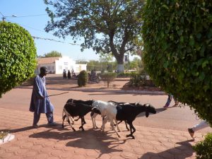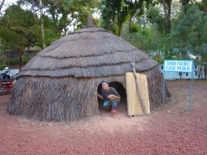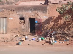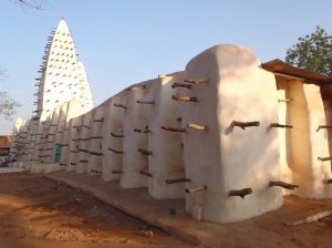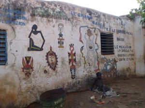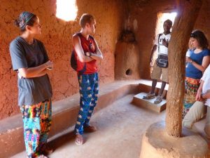 28 Dec: Breakfast at 0830 and we had peanut butter/jelly! Yum. We had a brief overhead locker clean up after breakkie and mysteriously, Hoff’s battery charger resurfaced…good news. Becky’s group had to go shopping for cook group, but Tim was feeling violently ill, so he swapped cook duty with Robby, who joined team 5 for this week only. There were a total of 3 groups shopping for food (groups 4, 5 and 6) so we all decided to head out together. However, since we were on the lookout for meat (and thus ice to freeze it), we headed over to the Marina Market on Rue Delafosse and separated from the other two cook groups. Our quest for ice was for naught as it was unavailable, so having a meat dish was out of the question. Instead, we decided to make a noodle stir fry with eggs, and headed over to the gran marche to stock up on carrots, peppers, onions. However, en route we ran into Sean’s cook group who derided the market for its lack of bread. So we detoured to the Patisserie and were able to score 20 loaves of bread for 2500 CFA. The rest of our ingredients were fairly straightforward, and we were able to get some shrimp crackers to supplement our meal (yum, what a treat). All of us were feeling the heat, so we decided on a quick lunch break at our favorite restaurant, the Bobo Dia. There, we linked up with Nancy, Luke, Bree, Lucky, and Dowelly and ordered lunch. The service was lacking from yesterday, as the order for French fries was screwed up, but it was all good. We opted to walk back (instead of take a taxi) and wearily reached the campsite around 2 pm to offload everything. Our plan was to immediately head back out for a bit of sightseeing as we still hadn’t seen Bobo’s main attraction yet, its Grand Mosque. So armed with our map, we braved the heat and walked back into town where we linked up with Dowelly (Luke wanted to head back into camp) and made our way to the mosque. The Vieille Mosque, a mud built mosque constructed in 1880, exceeded our expectations. Our guidebook said it is Bobo’s number one sight as a fine example of Sahelian architecture, and we were not disappointed. We had to pay 1000 CFA to enter the mosque, and 500 CFA for a guide (unfortunately he only spoke French), but it was well worth it to check out the interior of the mosque as well as the rooftop work. On our way down, we ran into Goodie’s group and were envious of his fluent English speaking guide, so we decided to linger and join the other group when they explored the old village of Kibidoue afterwards. To occupy our time, we befriended some hilarious boys hanging out by the mosque, who happily posed for us in silly positions. It was a lot of fun to play with them, and before we knew it, the other group was back down for the village tour. There was a bit of confusion as we now had to pay another 1000 CFA to enter into the village, as well as 500 CFA for a guide. But we were happy to now have a knowledgeable guide who patiently explained the village to us (it is divided into an animalist and muslim section), and we wandered around to see the oldest house (the “Kanssasso”) which dated back to the 15th Century, as well as the animalistic court room (where the accused sacrifices a chicken while sticking his or her hand into a tiny hole. Once the chicken has been killed, if the accused cannot easily withdraw their hand, they are guilty and must pay a penalty of cows, goats, sheep or chicken as retribution). Other highlights included a visit to the blacksmith where some members of our group bought unique souvenirs. The children throughout the entire village were happily posing for photos for us, and it made for a pleasant excursion. The finale was a visit to the sacred fish pond, where massive catfish suffer in a stagnant pool of refuse…we felt so bad for the fish and asked our guide why the locals throw their garbage here. It would otherwise have been a tranquil and scenic spot, but was marred by the inexcusable garbage dump by the water’s edge. Afterwards, we split from the group as we were keen on checking out the “marche de poterie”, a road side market of exquisite, hand crafted earthenware pots and vessels. Despite the fading light, we knew we still had enough time to visit the Musee Provincial du Houet on Place de la Nation, which charged a 1000 CFA entry fee. The displays were cool but the most interesting aspect for us were the full size, replica houses. The last stop on our Bobo tour was a quick visit to the train station, which was another example of a Sudan-inspired building. On our walk there, we saw the fading glory of the Palais de Justice, another fantastic Sudan style building. It was dark when we set back towards CasaAfrica, passing several uniformed policemen on the road. It was eerie seeing the security presence, as they had literally materialized throughout the city as the sun set. Dinner was a yummy meatball and potatoes meal, created by Sean, MJ and Lar’s group. Two thumbs up. Nancy made an announcement that tomorrow we would be entering Ghana, and that she and Chris would be working on a group DVD of everyone’s best photos of the trip…yay!
