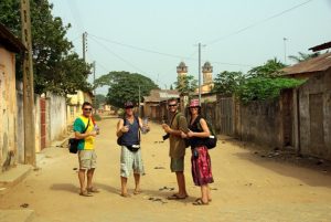 Dowelly, Lucky, Robby and Bree pose on Avenue de France in Ouidah