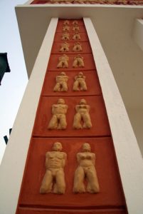 Shackled male and female slave depictions on the archway of the "Door of No Return"