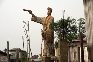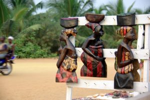 Statue depicting both sexes at a craft shopping area; Ganvie Lake Village