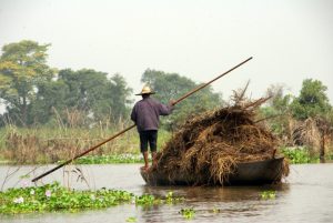 Taking hand woven baskets to sell at the floating market; Ganvie Lake Village