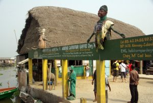 A hotel, bar, restaurant and arts/crafts store all in one; Ganvie Lake Village