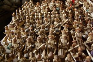 Carved wooden crafts for sale outside the Door of No Return monument; Ouidah