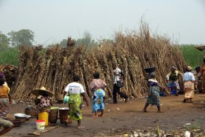 Piles of cut branches to be used for fish traps at Ganvie Lake Village