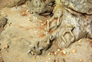 Hear no evil, see on evil, speak no evil, carved into a tree trunk; Ouidah