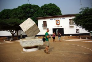 20 Jan: We drove until the border crossing at Hilakondji, Benin around noon. Just across the border we stopped for about 10 minutes so anyone interested could grab street meat. Robby picked up some roasted pork for 2000 CFA. Though the meat was tasty the small amount we got ended up being a little bit expensive. Several other people got cold chicken for about 500 CFA each. While it was cheaper, it was not as tasty as the roasted pork. We stopped in Ouidah around 2 pm for lunch at an empty lot on Rue Van Vollenhoven. Lunch was veggie sandwiches but we didn’t eat much because we had the roasted pork a couple of hours earlier. After lunch we were joined by Bree, Lucky & Dowelly to head towards the Python Temple. While making our way there, we saw the rest of our group taking a different route, arriving to the temple just ahead of us. Just to keep from being all crowded in together, we opted to let them explore the temple first, while we took photos of the Ouidah Basilica and had drinks just across the street at the Vatican Café. Large local beer was a bargain at only 500 CFA. After our drinks, some of the others came from the Python Temple and said they were able to sneak a peek without paying or taking photos, but from what they could see, it was a tourist trap to be avoided. We walked over to check it out for ourselves but the entire temple complex appeared abandoned, so we quickly moved on. Our next destination was past the Ouidah Mosque down towards the Maison du Bresil (Brazilian Governor’s Mansion) but it seemed that we had walked further than 200 meters indicated on the map. After stopping and asking locals they pointed just a bit further down the street. Entry was 1000 CFA. The building was nothing extraordinary but it did have an interesting display of art and information related to Women in Africa. Then the attendant walked us next door to the exhibition of contemporary art & voodoo symbols. He attempted to charge us another 1000 CFA each. Lucky and Bree paid but the rest of us were not that interested. Seeing that he was pushing the limit on entry fees, he then allowed us all to visit with only the 2000 CFA collected from Lucky and Bree. The displays here were also interesting and gave a little insight into Voodoo beliefs. Additionally, there was a grave in the center of the building, which the attendant said was the resting place of an American voodoo leader. Afterwards, we headed back into Ouidah, and saw an intricately carved tree stump in a town square. It was pretty cool and we took quite a few photos of it from various angles, before heading onward to the Portuguese Fort Sao Joao Batista/Museum of History which was built in 1721. Entry was 1000 CFA and interesting enough to visit for its displays and views of the fort itself. From the fort we started our journey along the 4 km Route des Esclaves, which is the sandy route that slaves were forced to embark to begin their final trek from the center of town out to the beach and the Door of No Return. Interspersed at various locations along the track were green statues of various royal emblems of the Chiefs of Abomey, and we took several photos of the more interesting statues. The Door of No Return was well worth a visit, decorated with bas-relief images of male and female slaves on a large arch and sculptures of slaves in shackles. We paused and reflected on just how many slaves passed through this area to meet their fate in the Americas and the Caribbean and it was a very somber experience. Our campsite was the “Le Jardin Bresilien”, which would have earned rave reviews except that they charged a whopping 2000 CFA for the privilege of swimming in their pool. Instead, some of the braver boys decided to check out the tumultuous ocean for a free dip but they came back stating the water had a strong current and felt a bit too dangerous for their liking. After setting up our tent and downing an entire carton of mixed fruit juices to replenish our fluids, we hung our slightly damp sleeping gear on the laundry line to dry and enjoyed the vegetarian curry dinner that Bree, Luke and Kendra made for dinner tonight. Since time had shifted ahead by an hour when we crossed into Benin, everyone was in their tents shortly after dinner, making for another early night.