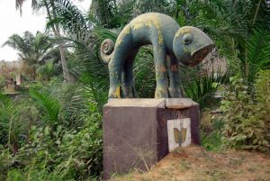 Royal emblems of the Chiefs of Abomey line the entire 4 km path of "Route des Esclaves" in Ouidah