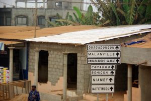 An educational poster showing that AIDS can easily cross borders within west Africa