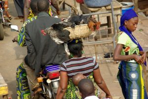 Lady selling chickens on the roadside near Ganvie Lake Village