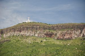 14 Mar: Breakfast at 5:15, left at 6 am. It had been a chilly night, and as a result, everyone was huddled in warm clothes for the drive. We drove straight to Lubango where we had hoped on filing for our visa extensions. After looping around the scenic town, complete with its own Christ statue at the top of a mountain range, we ended up parking at a gas station to refuel, fill gerry cans and offer Nancy an opportunity to head over directly to the customs office to check on our visas. After a brief wait, Nancy came back to brief us that our extension request had been denied, because with transit visas extensions weren’t possible (only tourist visas could be extended). With the bad news in hand, we had a mere 5 minutes to conduct any last minute shopping to rid ourselves of excess Kwanza, and then we drove as fast as possible towards the border. Becky’s cook group brought all of our lunch stuff on the truck so we could eat while driving to save time. It was a fun (albeit windy) lunch of corned beef, crackers, pineapple and tomatoes. We drove on and on and started a truck game to guess how long we would drive before Chris called it quits (the times ranged from Sean at the low end with a 6:40 pm guesstimate to Norma’s guess of a 9 pm end time). Sara guessed correctly as we pulled up to our campsite at exactly 7:02 pm. Our bush camp was on the side of the road about 150 KM from the border where we enjoyed a nice sunset. Dinner was a simple ravioli meal and we fell asleep knowing that tomorrow would be a challenge as we still had rough roads to contend with before reaching the border to Namibia.