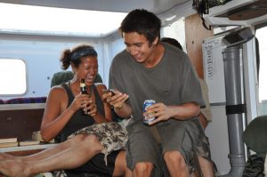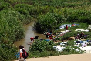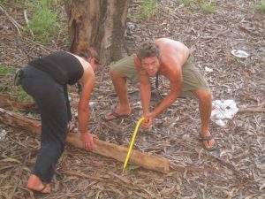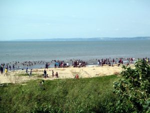 13 Mar: The early morning breakfast routine was easy to get used to and we were on the road by 6 am, driving past the town of Huambo at 7:40 am. The beautiful rock formations continued to impress us, and we spent a lot of time gazing out at the passing scenery from the beach and the side windows. Last night’s curry took a vengeance on us today as Luke lit up a series of absolutely horribly stinky farts that kept the entire truck on its toes and with burning eyes. Smelly Luke is now banned from ever eating chickpeas or soy mince again! Today’s road were absolutely horrible, as the good distance we drove yesterday was but a memory as we fought against dismal roads to make some progress. Lunch was in a nice shady spot under Eucalyptus trees and Robby made an impromptu shady spot on the beach with his laundry line and a grass mat. We had to tackle muddy pot holes and bumpy terrain, and were so slow going that we were even passed up by a guy riding a bicycle dressed in a fancy suit! Eventually, we hit tarmac road again (thank God) and attempted to guess how long we would drive before Chris called it quits (the times ranged from Sean at the low end with a 6:40 pm guesstimate and Norma with a 9 pm end time). Sara guessed correctly as we drove for less than an hour on the tarmac before finding a campsite for the night at 7 pm. Becky, Sara and Lucky made a yummy pumpkin-tomato pasta meal which went down well. Meanwhile, Bree and Luke volunteered to fry up some prawn crackers as long as cook group did the dishes so it was a deal. After dinner, cook group served up a treat by making a yummy peach custard desert which was well received but took a while to prepare. Total distance drive today: 264 KM.
