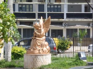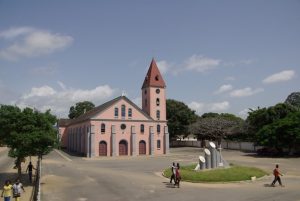 6 Mar: After getting stamped out on the Congo side of Nzassi, we had to fill out forms before getting stamped into the Angola border town of Massabi. Welcome to Angola! A friendly money exchanger was offering decent rates for the US $ (95 Kwanza for the US$) versus crap rates for the Euro (100 Kwanza for the Euro) so we had Lucky change us $10 worth since he owed us that amount in CFA. The roads were impeccable, and we zoomed along until Chris found a suitable spot for a brief lunch. The sun was beating down on us ferociously and we all tried to minimize our time in the sun. Nancy made a lunch time announcement that since the roads were so good and we were doing so well on time, we would head to the town of Cabinda to have a look around. Yeah, a new town to check out! Becky’s 10 year old Lonely Planet had a short blurb on Cabinda touting its music and bars, but stating that foreigners were targeted for kidnapping. Sounded interesting enough for us! Once we hit Cabinda, Chris drove us all around so we quickly got a feel for the city. Unfortunately for us, it looked like there had been a lively carnival festival in the morning, as everyone was still in face paint while carrying on with their merry making. We had just missed the party…gutting! Since it was a Sunday, the town appeared dead post-Carnival celebrations. We joined the group wandering around in search of a bar and ended up ditching the group to briefly check out the waterfront. The Angolan kids were having a beach party and it looked like an evening concert was getting set up by the beach side. We linked up with Pam and Norma and told them about the bar we had found next to the Cathedral so off we went to link up with everyone else. Beers were priced at 100 Kwanza for a 0.33L bottle and we opted to split a cold one between us before rushing back to the truck for our 4:30 pm departure. Our bush camp was a particularly fine one, nestled in the middle of a tree reforestation project. All was well until an irate man in a taxi cab pulled up, claimed he was from the military, and informed us that we were prohibited from camping here as it was in the middle of a military zone. Since he was dressed in civilian clothes and acting agitated, Nancy asked him for some ID and once she verified that he really was a solider representing Angola, she tried to reason with him. He insisted on taking her to see the chief, and her last words to us were “if I don’t come back or anything happens to me, tell my mom I love her”. Since Becky was on cook group, she thought it would be prudent to avoid starting the fire until we knew for sure if permission to camp here would be granted or not. About 20 minutes later, Nancy returned with 4 Angola visitors and we were told that the Chief had granted us permission in Portuguese. Thankfully, Nancy’s proficiency in Spanish was sufficient to understand everything that was being said, and once given the green light, we started cooking dinner. The vegetarian meal came out quite well, which was surprising since a whole lot of random spices (paprika, chili powder, salt, pepper, basil, oregano, vegetable stock) were added to give the meal a bit more flavor (the soy mince was a plain one). Nancy had us fill out FCO forms indicating that we were aware that we were traveling through a no-go zone and aware of the insurance stipulations after dinner, and it was a hot sweltering night spent with armed military escorts who took 3 hour rotations to ensure our protection all night long.