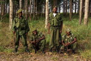 7 Mar: When we woke up after a restless night’s sleep, it was to the surreal scene of Angolan soldiers armed with Kalashnikovs (AK 47s) patrolling the campsite. They kept to themselves and we were busy preparing breakfast so we could have an on-time departure at 8 am. The leader of the soldiers started chatting with Nancy and he asked for permission to take a photo with us, so we happily obliged. That seemed to open the flood gates as requests to pose with our protectors were now forthcoming and they were happily obliging. How cool that we could take photos with these guys who selflessly protected us all night long? We felt badly that we couldn’t even offer them a bit of breakfast to thank them for taking care of us. After bidding our new found friends goodbye, we drove towards the border. Expecting that it would take an hour, we were all taken aback when the border was literally within walking distance of our campsite, a mere 3 minute drive away. No wonder we had armed guards watching over us all night long! It was evident we had been in the middle of a military zone now that we realized the border was right here. It took no time to get stamped out of Angola, but entry into the Democratic Republic of Congo (formerly Zaire) took about 3 hours at the entry town of Yema.