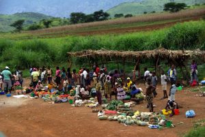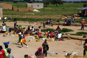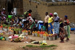 12 Mar: It was a rude early morning wake up when torrential rain poured down at 4 am, forcing Robby into the cold to peg down our window flaps. Breakfast was supposed to be at 5:15 am but due to the heavy rain, Nancy made the command decision that we would eat on the road. Instead, she instructed us all to get up and pack up, as we were moving out. Good thing we didn’t dally as the ground quickly became a muddy bog hole and everyone started tracking heaps of mud onto the truck. We pulled out and drove to a nearby gas station in Panguila where we got gas, emptied our trash bin, and Nancy had a shoving contest with an armed guard who tried to prevent us from filling our gerry cans with water. She literally elbowed him out of her way, bellowed that she had already cleared it with management and for him to take it up with them if he had a problem with it! Go Nancy, she was not playing around. We took advantage of the water puddles in the parking lot of the gas station to rinse off our muddy feet and absolutely looked the part of the grungy overlander! Sean spied a car in the fuel line queue that had french baguettes so Robby headed over to inquire how much they cost (30 Kwanza per loaf) and he bought a dozen to split between us and Luke/Dowelly. This set off a mad buying spree as everyone was hungry for french bread after eating muesli for breakfast over the past few days. While we were waiting on filling the gerry cans, a quick breakfast was eaten off the side of the truck, and shortly before we left the station, a beautiful rainbow appeared on the horizon. Today was another long drive day, passing by Luanda (the capital of Angola) and the town of Dondo, where we had a brief stop for Nancy to stock up on some fresh onions, tomatoes, and bananas. Since fuel was so cheap in Angola, we made another pit stop in another gas station shortly before lunch, and were able to spend some of our extra Kwanza buying snacks. Lunch was a simple meal of pasta with tomatoes, corn, beans and we had plenty of leftovers to eat on the back of the truck afterwards. The scenery today was pretty spectacular, with thatch roofed houses and interesting rock formations that caught our eye. At an afternoon stop at yet another gas station, we could smell delicious street meat and hear loud music from a nearby store, but Chris wasn’t letting anyone off the truck as we had to keep pressing on to meet our deadline. Rain clouds showed that an afternoon rainstorm was imminent, and we had a brief stop so Nancy could buy some pineapples and pull on the beach cover before the rains came down and drenched us. Our campsite tonight was just north of Huambo, and Norma and Katherine made a vegetarian curry for dinner. Tim reported that according to his GPS, we drove a whopping 540 KM today, which gave us hope that perhaps we could transit across Angola on our 5 day visa after all!
