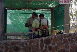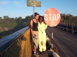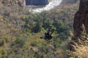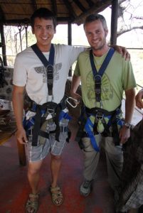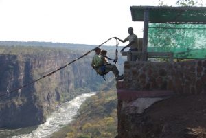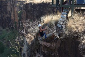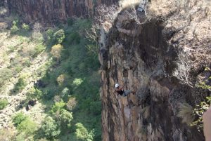 10 May: It was an early morning wake up as we had to have breakfast before departing at 6:30 am to be at the border by 7 am for our pick up for a microlight flight over the falls. It was relatively easy to get stamped out of Zimbabwe so early in the morning as there was no queue, and a representative from Batoka Sky was waiting for us with a van just inside no man’s land. As we piled into the van, he collected our passports and $20 USD each so he could process our Zambian visas for us. Lisa had received a lot of super grungy notes from the ATM machine and she took advantage of this opportunity to rid herself of them. However, the immigration officials were none too pleased and they actually refused to accept payment with such dingy notes, but thankfully our guide persuaded them that we had not brought any other extra bills as this was what we had with us and they reluctantly granted us our visas. Once in Zambia, we had to pick up four additional passengers who were doing the early morning helicopter flight and with a full van, we drove to the Batoka Sky helipad/airstrip. The new passengers were filling us in on details about Osama Bin Laden’s death as we were all starved for the latest news. We made payment for our 15 minute microlight flight with credit card ($135 each plus $20 for the photo DVD) and in no time at all, Lisa and Matt were bundled in their microlight suits and strapped in to their seats, ready to go. It was a quick process as they pulled up and were soon out of view. We were the next two passengers in the queue, and watched as the helicopter folks got escorted to the helipad and packed like sardines into their helicopter. At a whopping $135 per person for a 15 minute flight, we felt bad for the folks crammed in the middle with no window to look out from as they had the absolute worst view. Microlighting is definitely the way to go! Before we knew it, it was our turn to go and Becky was up in the air first, with her flight pilot named Pascal. He was excellent, pointing out all the major sights below and spotting giraffes, elephants and hippos. The view from up high overlooking Victoria Falls was out of this world phenomenal! It was such an incredible sight to see the entire falls stretched out down below and gave us an incredible perspective of just how massive Vic Falls truly is. Even though this activity was quite pricey, we felt that it was a must-see as we simply couldn’t fathom the same magnitude of the falls from our ground visit on the Zim side yesterday. Robby’s pilot was named Brian and he had a hell of a time getting his microphone and headset to stay snug on his head, so it was a bit more difficult for him to communicate with Brian, but he also loved the microlight flight. When we touched down, we head directly to the photo display and purchased our DVDs of the flight (no cameras or loose objects are allowed up in the air so buying the DVD was our best option to capture the memories). Marie and Dowelly were the last two to take off, and everyone raved about how they were thrilled with the microlighting upon touchdown. What a contrast from our helicopter friends, who actually stormed into the office in a rage, complaining that they were shoved in the middle of the helicopter with no chance to see anything at all. They shouted that this was the worst organization they ever flew with and they would never recommend it to their friends. And of course, they wanted no DVD as a memento of their most awful holiday experience. So there you go folks, choose microlighting over helicopter any day! Once we piled back into the van, there was a bit of a debate as to whether we would get dropped off at the adrenaline day gorge swing or the Zam border, and after radioing in to his headquarters, our driver was advised to drop us off at the Zambian border. There, we linked up with the rest of our Oasis group who was participating in Adrenaline Day with Abseil Zambia. Unfortunately for all of us, the Abseil Zambia transport van was down for maintenance, so we had to be shuttled in private vehicles 4 at a time, making it a long process to get everyone to the site. Our large group was broken down into two, with us belonging to the same group as Matt, Marie, Ichyo, Scott, Dowelly, Lisa and Naomi. For our first activity, we went directly to the “flying fox” or the “superman”, where we were all strapped into a harness and took off at a running start to leap into the gorge suspended from our backs. It was a bit disconcerting during the first run as all of us literally threw ourselves off of the edge of a cliff, but by the second run, we were all comfortable with the process. Next activity was abseiling, with the first abseil the traditional one and the second going down the cliff’s edge facing forward. As some members of our group had never abseiled/rappelled before, our guides patiently explained the process to us before sending us down one at a time, with a guide belaying us from down below. It was a lot of fun scaling the 53 meter cliff face and everyone got the hang of it after a while. The hike from the base of the cliff back to the top took about 20 – 25 minutes, and the path crossed directly below the gorge swing. We watched in amusement as Sean took off for his first gorge swing, screaming hysterically and shouting “don’t do it” when he finally caught his breath! When it was our turn, Becky was hardly given a chance to breath before being strapped in, harnessed and given a quick lecture on the proper form for stepping off for the gorge swing. There are three options consisting of a) stepping forward and dropping 53 meters in 3.5 seconds, b) stepping backwards while curled and hunched over, maintaining that position until the rope pulls taut or else risking injury, or c) going tandem backwards while holding your partner at the waist. Becky chose the first option of stepping forward and keeping Chris’ advice in mind, never looked down as she stepped over 
